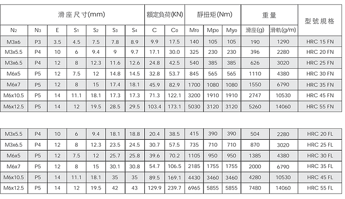 CPC標(biāo)準(zhǔn)型滾珠直線導(dǎo)軌HRC系列采用O型排列四列式滾珠循環(huán)設(shè)計(jì),滾珠軌道面與滾珠接觸角為45度,可達(dá)到四方向等負(fù)荷之效果。CPC特別在設(shè)計(jì)上加強(qiáng)力臂Lo的長(zhǎng)度,故在承受相同外力F時(shí),有更高的Mr值以提高剛性及抗扭矩能力方面之表現(xiàn)。此外同機(jī)型滑座中選用較大尺寸的鋼珠及較多鋼珠數(shù),在負(fù)荷能力的表現(xiàn)上更是多出競(jìng)爭(zhēng)對(duì)手10%~30%充分展現(xiàn)高負(fù)荷、高扭矩、高剛性功能。
