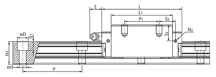 | N2 | N3 | E | S1 | S2 | S3 | S4 | C | Co | Mro | Mpo | Myo | 滑塊(g) | 導軌(g/m) | |
