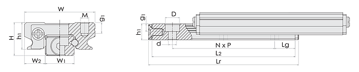 型號 組裝尺寸 導(dǎo)軌尺寸(mm) 滑塊尺寸(mm)
